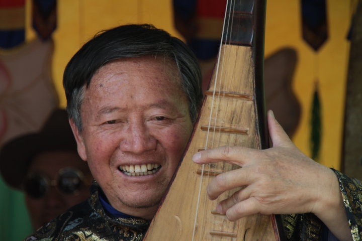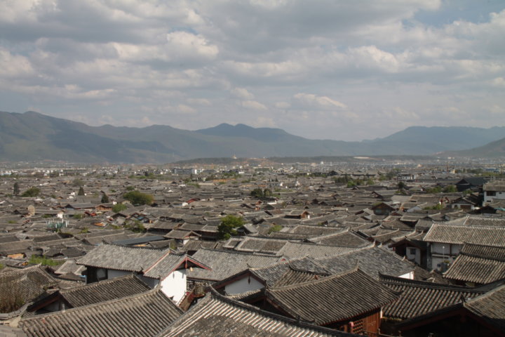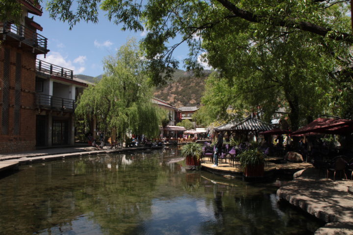 Nesse dia passeei com o Xiaoling e tive a plena consciência que estávamos a ter possivelmente o nosso último dia juntos. Primeiro, passeámos em Lijiang mas fora da zona histórica e o que vimos foi uma cidade normalíssima mas que continuava a dar a sensação de pequena vila. Apanhámos então o autocarro Nr. 11 que nos deixou “à porta” de Shuhe, uma aldeia que fica a cinco quilómetros do centro e que é bastante turística. Tal como em Lijiang o negócio do turismo está completamente implementado e enraizado na vida desta aldeia histórica: comércio, restaurantes, bares, cafés e hostels dominam quase todas as fachadas e os turistas acorrem aqui como enxames de abelhas. 😛 Porém ao circular nas suas ruas e ruelas foi-me possível apreciar o verde da paisagem, os canais que muitas vezes servem de lavadouros ou frigoríficos, as hortas, os músicos de rua e com os quais tive a oportunidade de “batucar” uma música, o sol e as nuvens, os desenhos feitos por estudantes e aspirantes a artistas e claro… pousar para a fotografia com uma chinesa trajada a rigor.