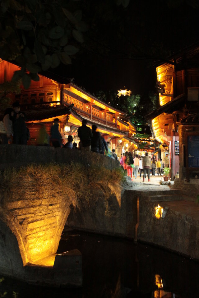 Quando saímos de Shuhe, finalizámos o nosso passeio na zona “velha” de Lijiang primeiro de dia, onde continuámos o passeio do dia anterior. À noite e não houve melhor dia para tal, houve um jantar convívio com uma das chinesas que esteve connosco em Niubeishan, com o seu namorado e com um rapaz chinês que conheci em Qiong Hai e que gostava de filmes italianos. 🙂 Depois de jantar foi possível observar o transformismo da cidade e apreciar a iluminação nas fachadas, as incontáveis lanternas e o movimento incessante e frenético das pessoas que por lá passeavam.