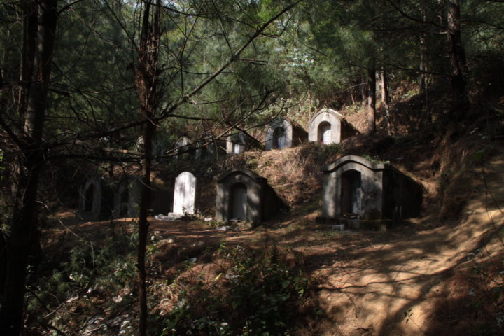 Na subida para o templo de Zhanghe, o trilho de terra batida tinha algumas inclinações elevadas, mas o facto mais curioso era a encosta estar coberta de campas, estava por isso a fazer a minha ascenção no meio de um cemitério. A partir do templo segui o trilho do hiking, serpeteando pela montanha e vendo diferentes faces da mesma, verdes florestas, panorâmicas de Dali, rochedos com formas curiosas – caras e esqueletos – algumas escarpas, rochas com fungos verdes e infelizmente por ser época de incêndios grande parte dos trilhos estavam cortados – o que impossibilitou a ida a alguns locais, havendo um controlo das horas a que as pessoas passavam (checkpoints).