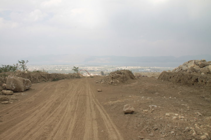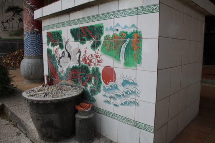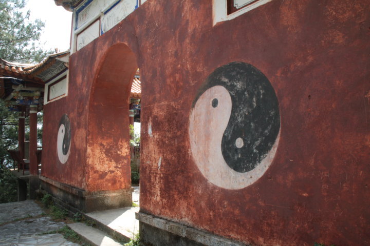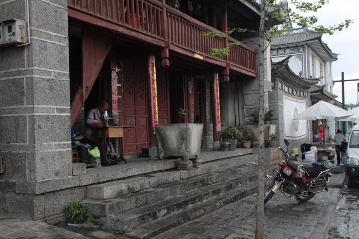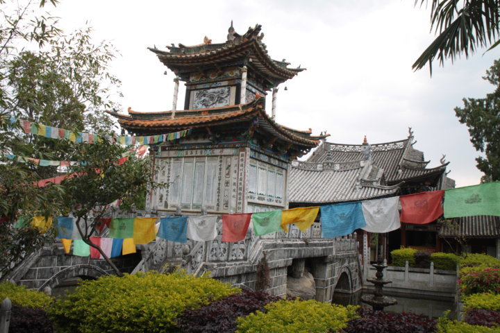 Entre o caminho do templo de Gantong e o templo de Guan Yin – que foi sem dúvida o mais belo do dia, com as coloridas bandeiras e torres brancas a harmonizarem todo o espaço – encontrei uma zona em reconstrução total – pó, camiões, entulho, escavadoras… – e que me ofereceu panorâmicas para a montanha e sobre a cidade de Dali. Ao fazê-lo, senti-me bem porque andei por caminhos praticamente inexplorados, nos quais os turistas não circulam e vi a cidade não maquilhada, a cidade das crianças, dos velhotes e dos artesão. 😀