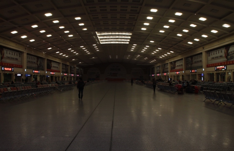 Cheguei à bonita e clássica estação de Hankou por volta da 1.10 e depois de comprar o bilhete para a ligação final, fui até ao Macdonald´s onde comi e tentei apanhar wi-fi – sem sucesso. Uma vez que o comboio apenas estava marcado para as 4.20 aproveitei para organizar as fotografias de Fenghuang, atualizar o Excel, vi chover na rua e escrevi no caderno “em tempo real”. Quando finalmente me dirigi à estação de comboios senti-me esmagado pela monumentalidade do átrio superior e aí apanhei wireless e verifiquei que em Nanquim iria ter de improvisar – relativamente ao hostel – e quando vi as pessoas a apressarem-se para entrar no comboio, fiz o mesmo. Ao chegar dentro do comboio e quando verifiquei que tinha de ficar à espera para partir, pensei que fora um idiota, pois devia ter aproveitado a ligação para pelo menos ter tirado a morada de um hostel.