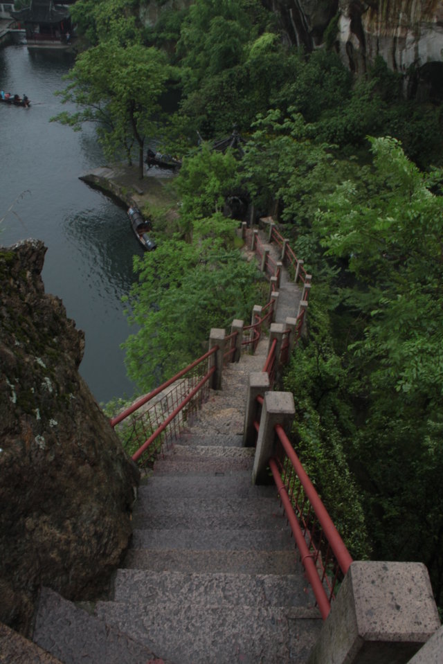 Quando começámos a visita ao lago Este da cidade, inicialmente o local não parecia nada de especial, mas à medida que o percorremos, este foi-se revelando e acabou por ser de longe a melhor visita do dia: o lago, as pontes, as colinas escarpadas, os barcos, as paredes brancas e as telhas negras, a vista do topo das colinas, a diferença de cor entre o rio e o lago, as rochas, a vegetação e a conversa! 🙂 E esta – à semelhança do que aconteceu no museu de Suzhou com a Yue – girou em torno dos números e do seu significado na cultura chinesa: número 4 – evoca a morte; número 6 – as “coisas” vão correr suavemente; número 8 – associado ao dinheiro; número 9 – associado ao Imperador, à longevidade sendo o maior número individual. 🙂