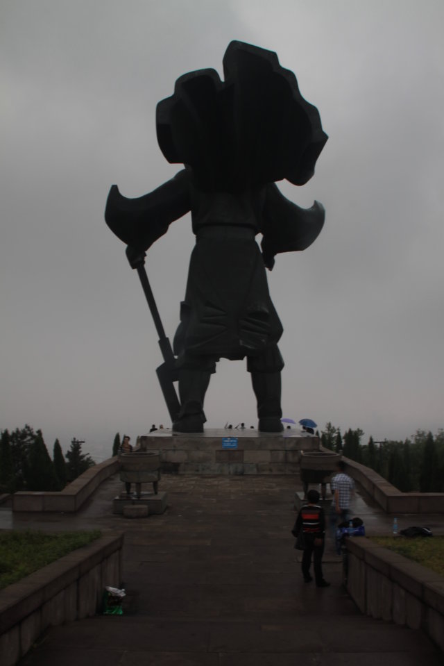 Depois do pequeno almoço e de comprarmos uma capa de chuva para a Shue, uma vez que chovia com bastante intensidade, partimos à descoberta da cidade e dirigimo-nos para o seu centro histórico, onde a figura de monta é o escritor Lu Xun.