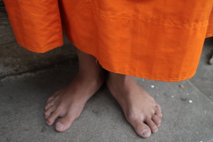 Seguimos pelas agradáveis ruas de Prabang, a vasculhar a melhor taxa de câmbio para os dólares do Zhou e entrar em quase todos os templos que encontrávamos. Chegámos então ao Wat Xieng Thong – templo da cidade dourada – e como se tinha que pagar o Zhou manteve-se fiel à sua filosofia económica e não entrou. As surpresas começaram logo à entrada, pois na bilheteira encontrei um lady boy e fiquei admirado, pois não esperava encontrar um Laos tão aberto relativamente a esta questão, mas… ao que parece é uma questão cultural e novamente fui relembrado que os países são como as pessoas, todos diferentes. 🙂 Já dentro do templo, maravilhei-me com os seus telhados, com as suas figuras desenhadas com vidros coloridos, com os seus dourados e misturas de cores, com os trajes açafrão e laranja dos monges e no final fui presenteado com a oportunidade de falar com um noviço e aspirante a monge. 😉
