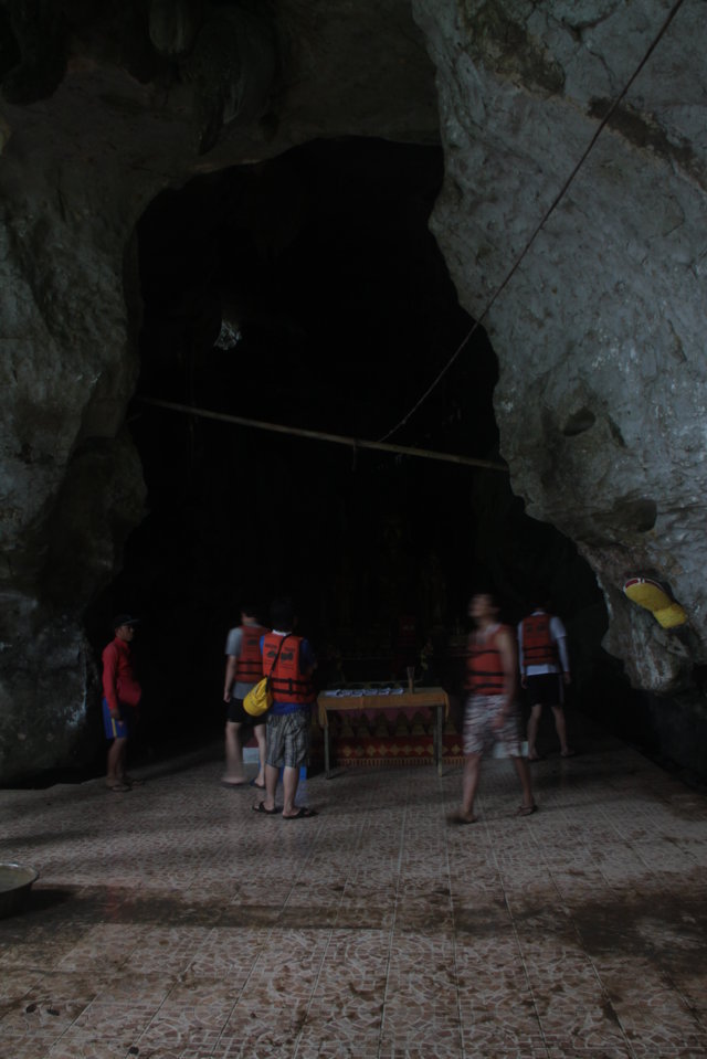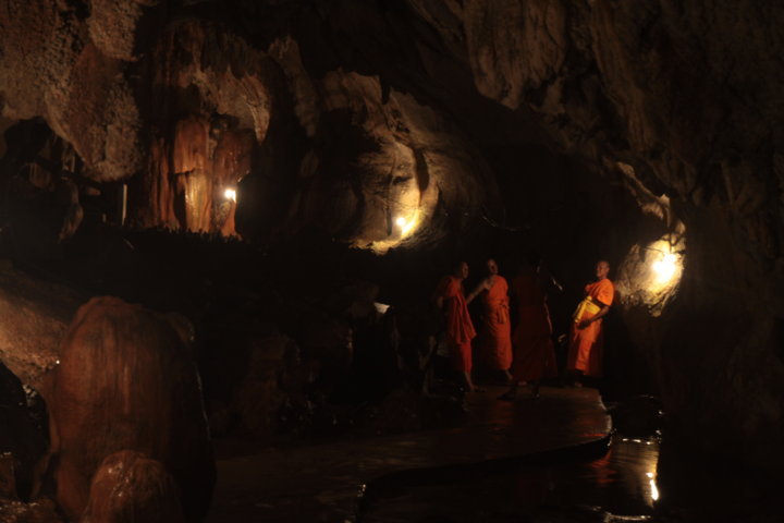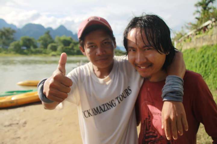 Depois dos magníficos dias na planície dos jarros, eu e o Zhou partimos para Vang Vieng, vila/cidade onde estivemos quatro dias. O local, está cheio de bares; restaurantes; vendedores de crepes e sumos de fruta, a cada dez metros; guesthouses; agências de viagens e empresas de aventura. A cidade é feia, desinteressante e está completamente virada para o turismo e para o turista ocidental… porém e à sua volta existe o rio Nam Xang e formações calcárias – montanhas e grutas – que a salvam do Inferno. 🙂