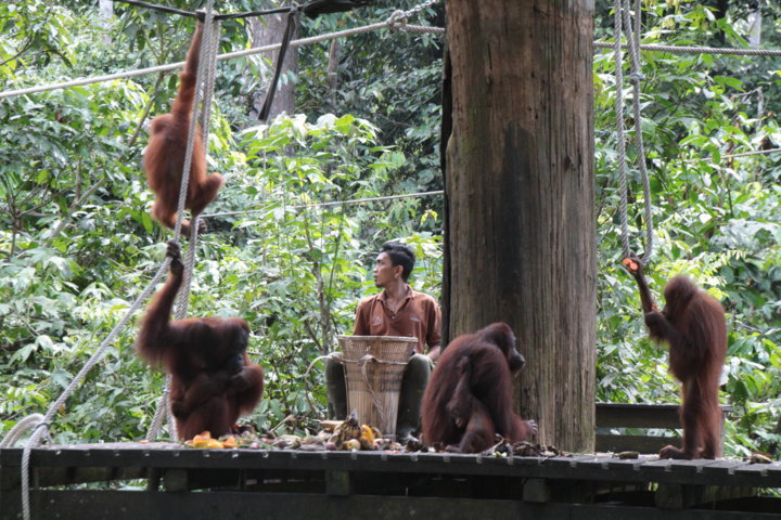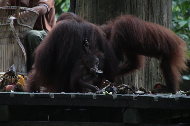 De qualquer modo e nos quatro dias passados em Sepilok ainda deu para ver nas imediações do lodge uns crocodilos “velhacos” e uma bonita e elegante ave branca; fazer duas visitas ao RDC (Rainforest Discovery Center) onde tive novamente contato com uma floresta tropical e com o seu ambiente verde, quente e extremamente húmido – cheirinho a selva; mas principalmente fazer duas visitas ao centro de proteção dos Orangotangos, onde tive a oportunidade de observar pela primeira vez estes bonitos primatas. 🙂 Neste centro, a maioria são órfãos e como tal, têm de ser ensinados a alimentarem-se e a tornarem-se independentes. O problema é que de todos os primatas, os orangotangos são os mais dependentes da progenitora e como tal o caminho para a completa reabilitação é moroso e exigente.