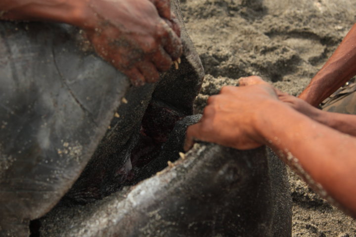Instantaneamente troquei o “sagrado” pelo “profano” e fui observar este “ritual”. No areal dezenas de pescadores de corpos robustos, secos e extremamente morenos, desossavam com rapidez e eficácia os animais. A carne era vermelha e branca, havendo muitas partes que se assemelhavam à gordura do toucinho e à medida que se amontoavam peças de carne na areia negra, pescadores iam “lava-la” ao mar para uma posterior partilha entre os membros das embarcações que pescaram os golfinhos. A areia estava a ser fecundada com sangue e no ar sentia-se um cheiro forte ao mesmo, a carne e a vísceras. Tudo foi aproveitado e no areal nada ficou, nem sequer as ossadas! Apesar do golfinho ser um animal “simpático”, este “ritual” não me chocou, possivelmente por saber que o mesmo, faz parte da cultura, tradição e modo de subsistência/sobrevivência, destas pessoas tão humanas e tão amistosas.