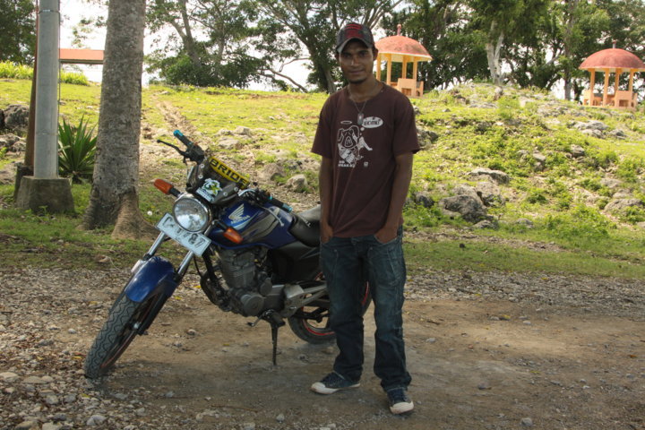 Após percorrer dois/três quilómetros sempre em sentido ascendente, passou por mim uma mota que parou. Com o condutor, numa mistura de gestos e palavras consegui negociar, um valor razoável… e em boa hora o fiz, pois a viagem mesmo montado, ainda demorou 40 minutos e fiquei com a ideia que se tivesse feito todo o caminho a pé até ao meu destino teria demorado entre quatro e cinco horas!! Em Asalainu fui deixado na estrada que seguia para Tutuala e depois de aguardar quinze-vinte minutos por um mikrolet, parou novamente um rapaz de mota, que me “ofereceu” transporte. Passados dez minutos de viagem, parámos em casa dele para arranjar um capacete para mim e aproveitámos para visitar a sua família. 🙂 A viagem de trinta quilómetros, demorou quase três horas!! Pois o rapaz – Lázaro – conduziu muito devagar, de qualquer modo e uma vez que não estava com pressa aproveitei para observar a paisagem – lago de Ilaralo, planícies, casas povoações e pessoas, montanhas calcárias… e ir falando em português – para ele foi uma boa oportunidade para praticar e para mim de aprender um pouco mais sobre o país.