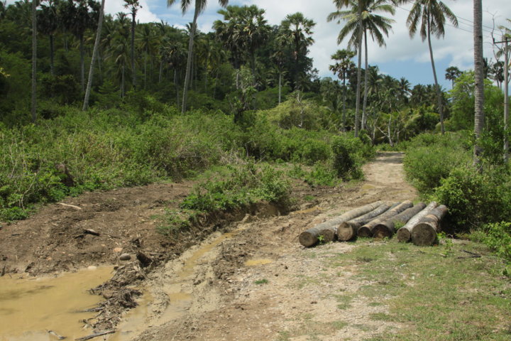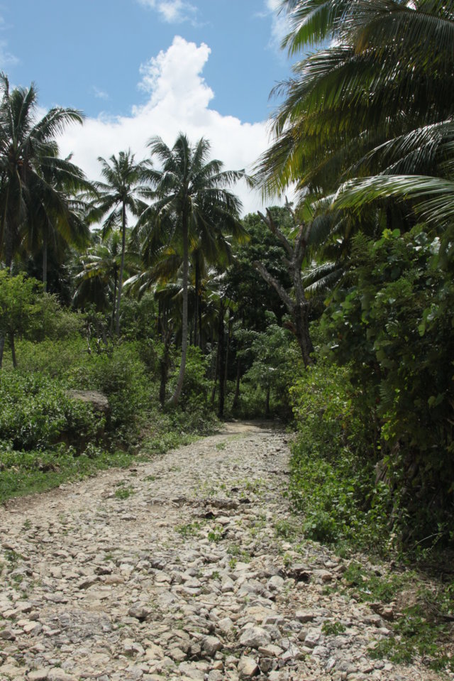 A última fase da viagem, ligou a vila de Tutuala à praia de Valu, oito quilómetros que foram percorridos a pé. Nas alturas em que o sol brilhava, foi duro, pois ao calor associavam-se dores no ombro direito – pele sensível – e nesse momentos só pensava em andar, andar… andar. A “estrada” era horrível, estando cheia de pedras roladas e se a pé ainda dava para escolher as zonas que eram pisadas, de carro/jipe não me parece que existam muitas alternativas. À minha volta apenas se via floresta, coqueiros, pequenas aldeias e cada passo associava-se ao desejo de querer chegar”! Quando vi uma pontinha do verde ilhéu de Jaco no mar fiquei realmente feliz, estava a percorrer a pé a estrada que me conduzia ao extremo leste do país. Estuguei o passo em direção à irrealidade, acabara de chegar à praia quase deserta de Valu…o “fim” de Timor Leste! 😀