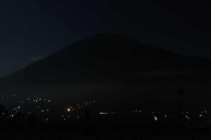 Quando voltei ao hostel, soube que havia um rapaz chinês de Xangai (Zhang Lu) interessado em escalar o Merapi, mas como desta feita não queria mais surpresas e aventuras, combinámos que iríamos fazer a ascensão com um guia! 🙂 Desse modo, e como a mesma iria ser realizada de noite, combinei com o staff do hostel para me guardarem a mala durante todo o dia e que apenas faria o check-in, depois do meu regresso. Durante a tarde, repousei fisicamente na área comum e comecei a investigar voos para as Filipinas. Quando o nosso “Jarbas” nos veio buscar, eram 22.00 e da cidade até à base do vulcão demorámos cerca de uma hora de viagem. Assim que chegámos, bebemos um café e esperámos pela uma da manhã (durante essas duas horas, adormeci fruto do cansaço e da falta de horas de sono dormidas na noite anterior). Durante o trekking tivemos muita sorte, pois estava uma enorme lua cheia que nos iluminava o trilho e um céu bastante estrelado. 🙂