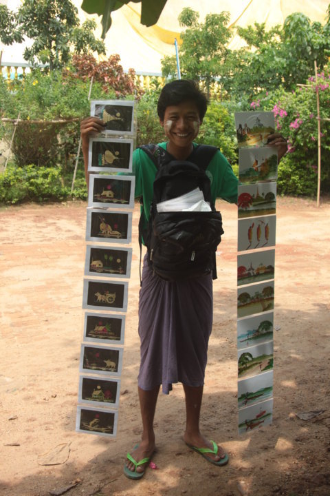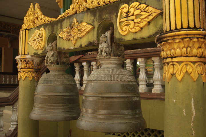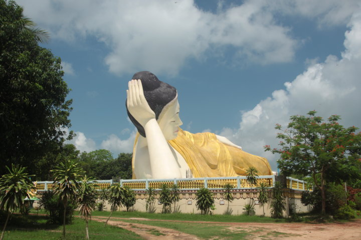 Em Bago, visitei budas gigantes – uma estátua mais recente e enooooooooooooooooorme e o Shwethalyaung buda, estupas e pagodas douradas e estupendas – principalmente a Shwemawdan, a mais alta do país; a Mahazeti e a Kyaik Pun, templos e o palácio/museu de Kanbawzathadi. 🙂 Durante o passeio matinal, também tive a oportunidade de conhecer um rapaz que se proclamou artista e pintor, e a sua simpatia foi tão imensa que acabei por comprar-lhe muitos postais pintados e outros feitos com bambu – mais tarde e à medida que fui percorrendo país, percebi que a sua conversa foi um “semi-embuste”, uma vez que muitas pessoas vendiam exatamente os mesmos postais 😛 . De qualquer modo, a principal recordação que me fica desta cidade, foi o início da revelação da aura budista do país! 😀