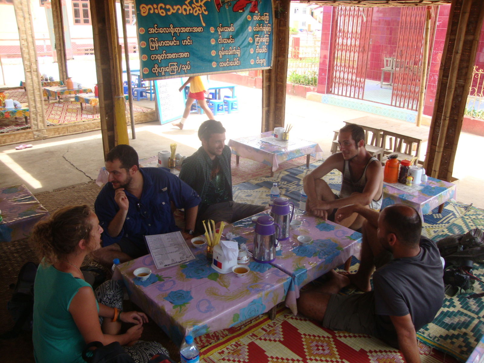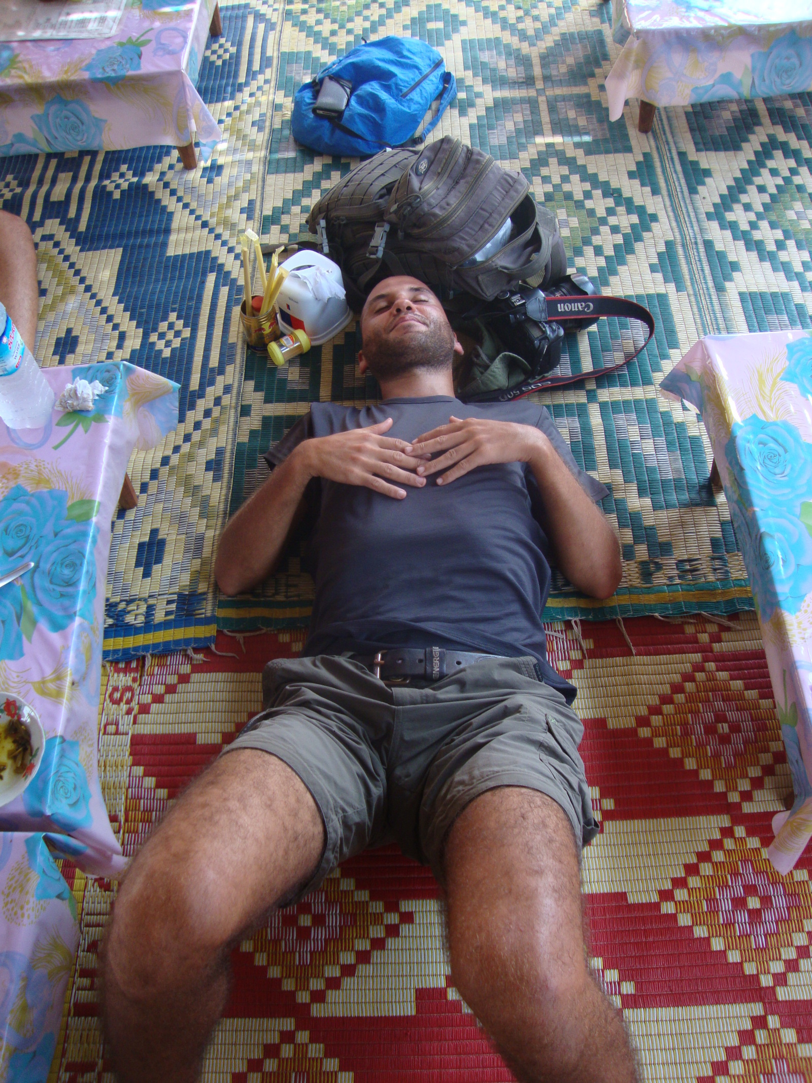 Nova paragem, desta feita numa “fábrica” tradicional de tabaco onde comprei cem cigarros para levar como recuerdos para Portugal e felizmente essa foi a nossa última “loja” do dia! 😉 Na paragem para almoçar, conseguimos negociar o valor do repasto e depois da paparoca, ficámos lá um bocado deitados a dormitar. 😛 Quando voltámos a embarcar, partimos para o Mosteiro dos Gatos Saltitantes, onde encontrámos um bonito mosteiro e gatos sonolentos e preguiçosos. 😛 A verdade é que durante o resto do dia não fizemos mais paragens, exceto algures no meio do lago para um mergulho, mas mesmo assim o tempo passou num ápice e apenas regressámos à vila de Nyuang Shwe depois das cinco da tarde. 🙂