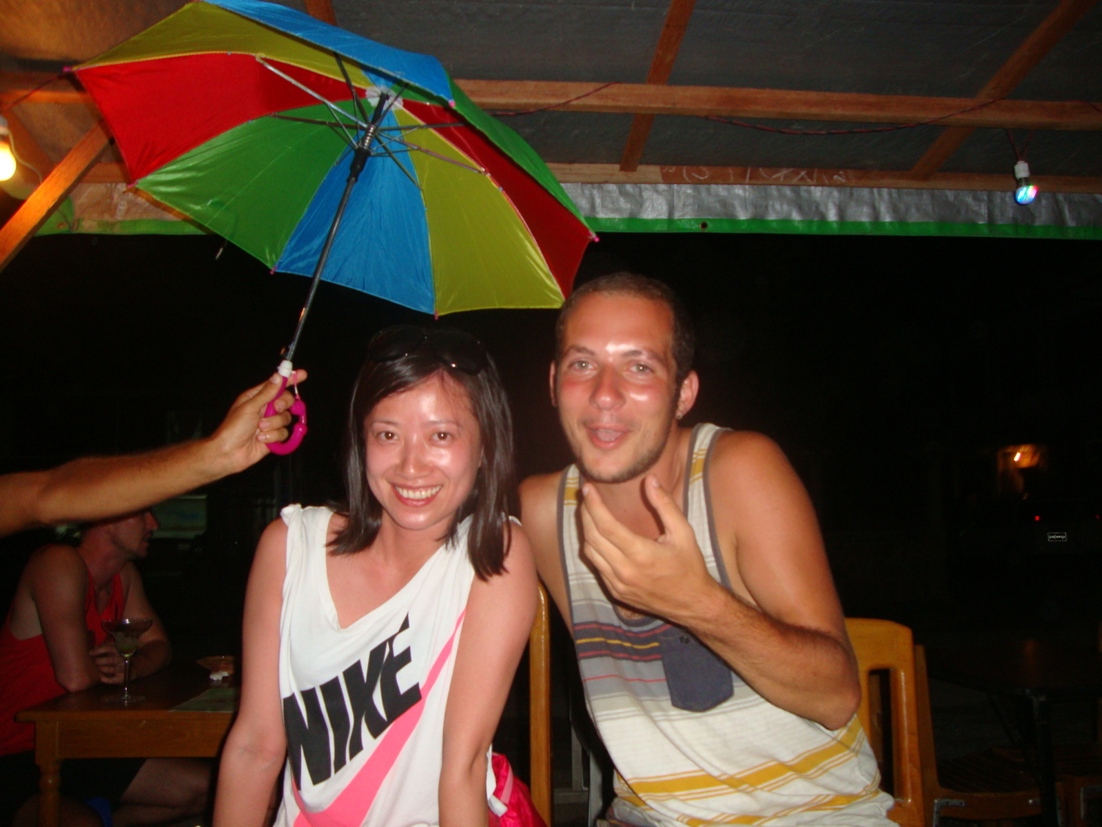 Findado o passeio, regressámos ao barzito do dia anterior e antes de pedir algo, notei que me faltava o telemóvel. Sem muita confiança, mas por descargo de consciência voltei ao cais para falar com o nosso barqueiro e antes de perguntar, já ele estava a acenar com o telemóvel na mão! Porreiro pá! 😀 Já mais animado, voltei à “base” e aí fiquei em amena cavaqueira durante o resto da tarde e príncipio da noite. Nessa altura e incrivelmente, passados algumas semanas e fruto do acaso, reencontrei Luke e Alexa – um casal de britânicos – que conhecera em Sugar Beach, Filipinas! O mundo é mesmo um T0! 😉