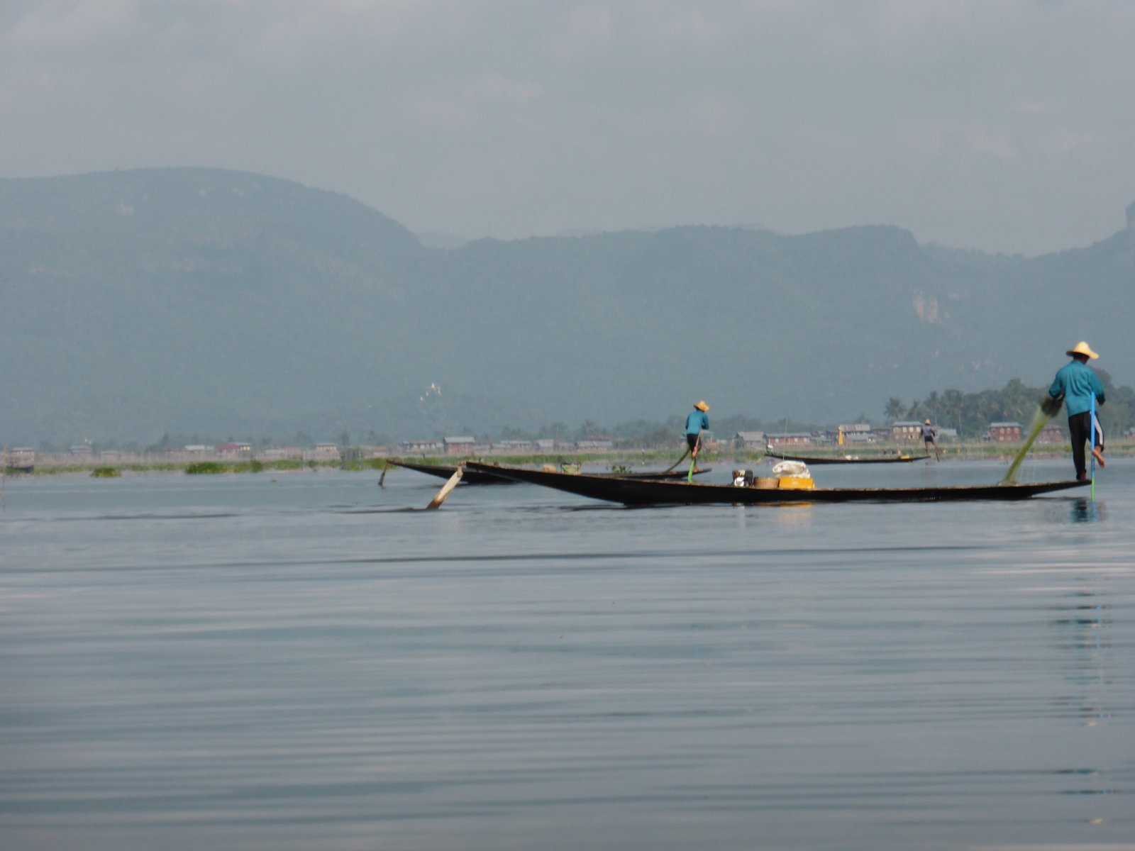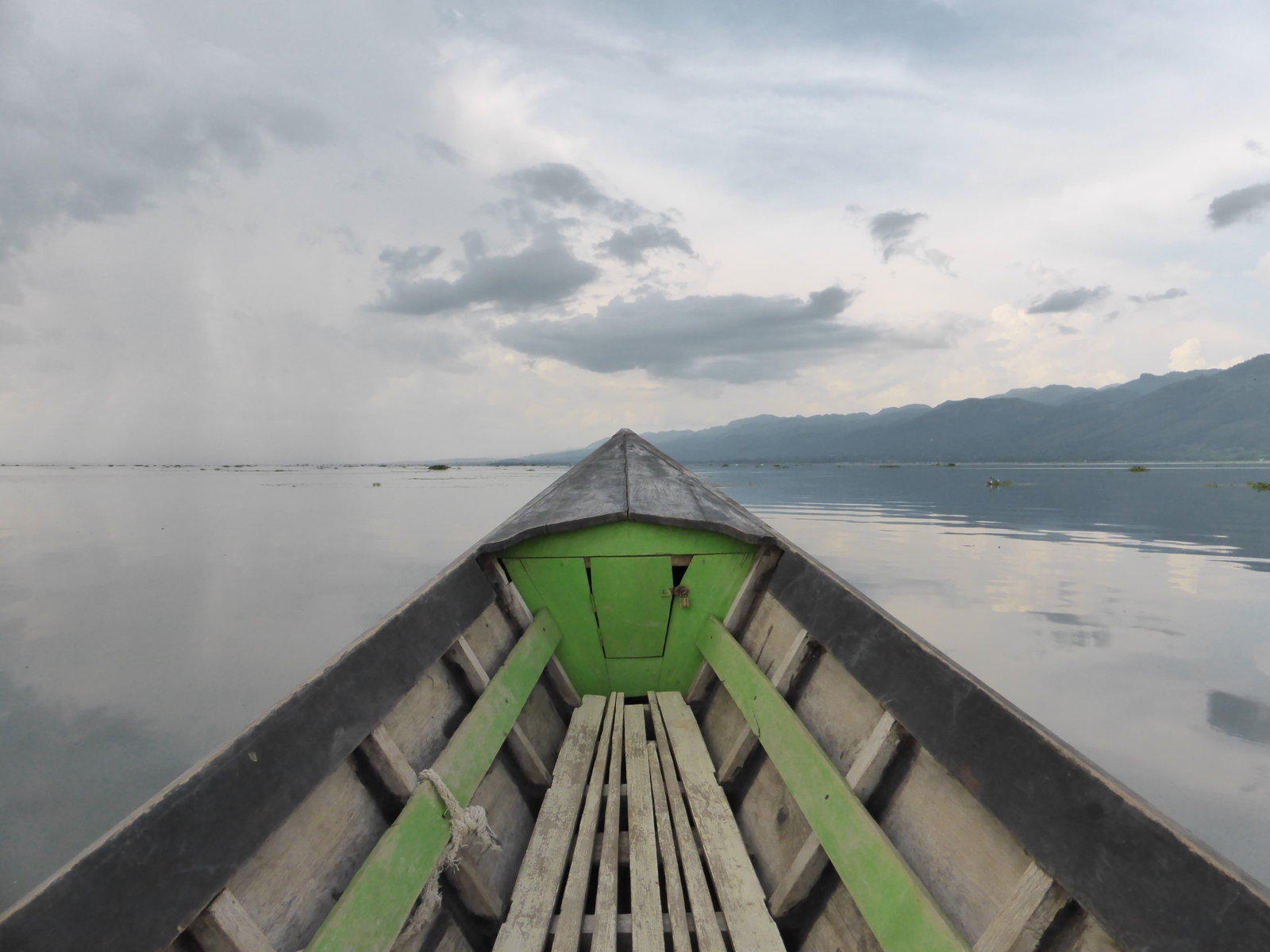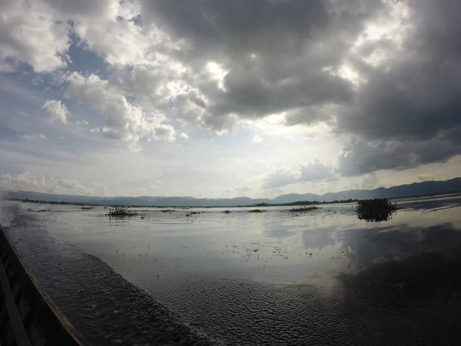 No nosso primeiro dia realmente a “sério” em Inle, passeámos de barco todo o dia no lago e nos seus arredores. Primeiro, fizemos uma longa e serena travessia numa superfície de prata até à povoação de In Dein, onde encontrámos o mercado diário – no lago de Inle, todos os dias existe um mercado, a sua localização é que se vai alterando – e durante quarenta e cinco minutos vimos toda a sua azáfama e movimento, e apanhámos uma grande chuvada, que foi tão rápida a chegar como a partir. 🙂