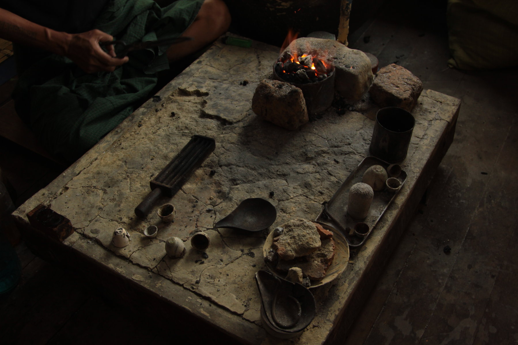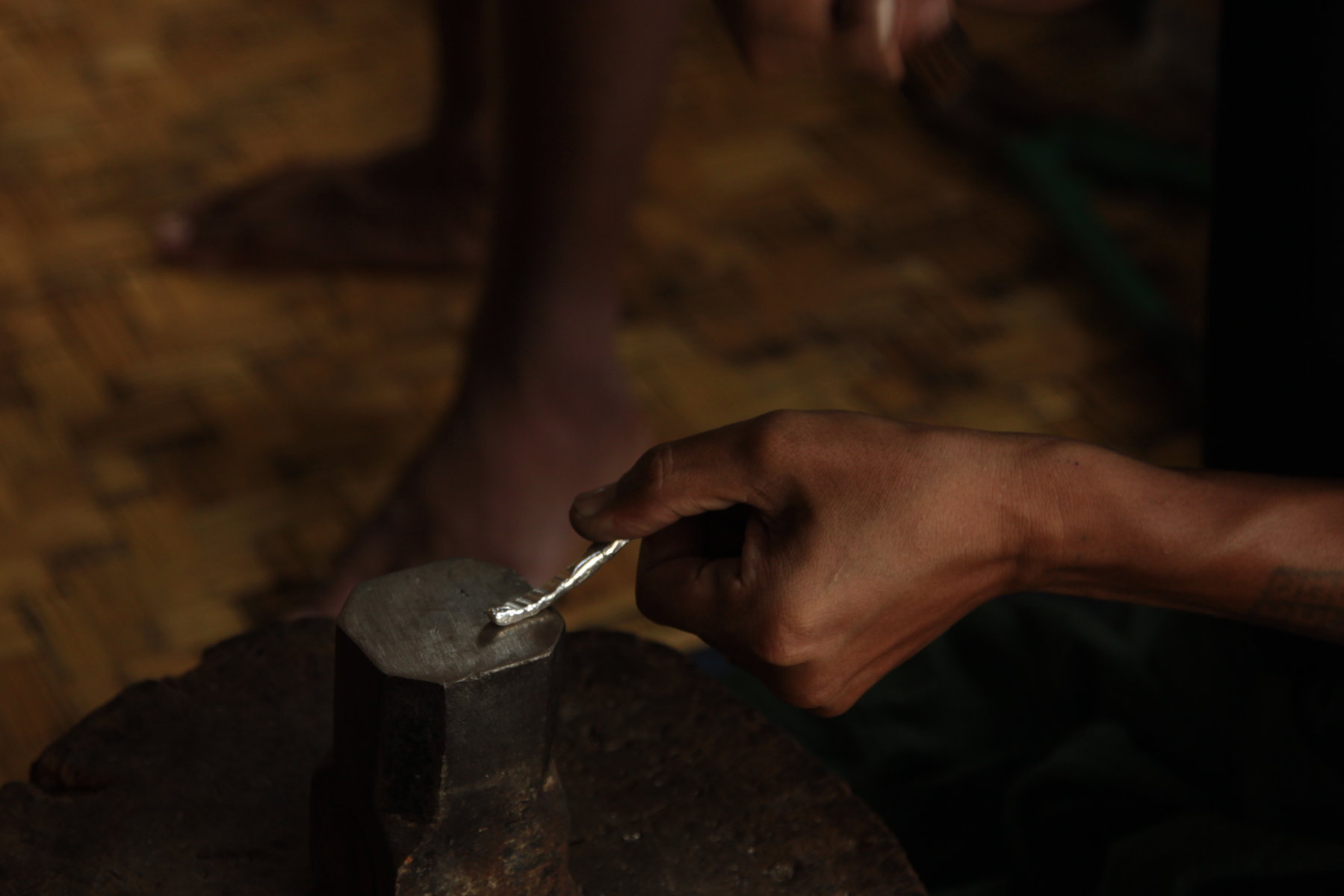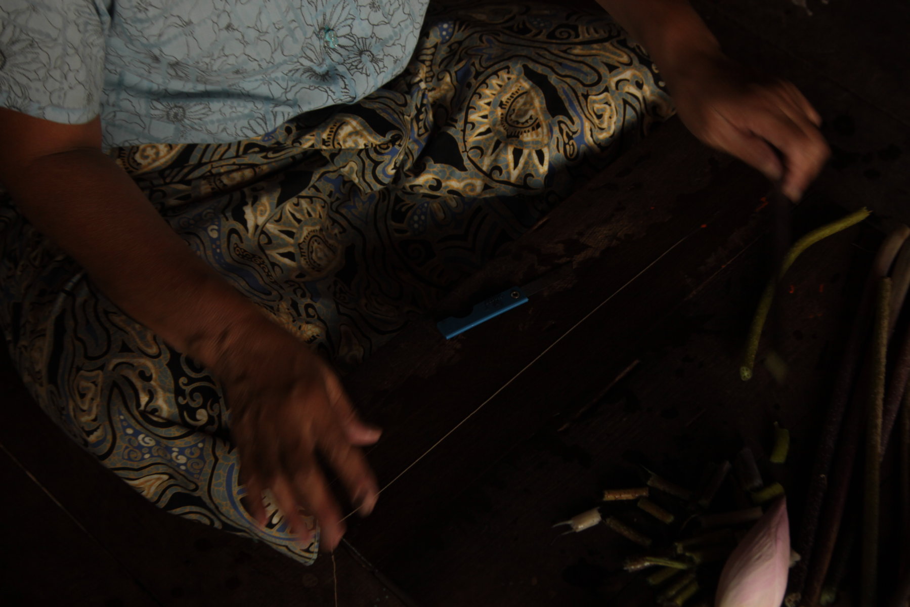De regresso ao lago, fizemos as “famosas” paragens nas lojas dos artesãos locais, ao mesmo tempo que vimos a vida do local e dos seus habitantes a desfilar à nossa frente, tal como os frames de um filme. 🙂 Primeiro, parámos numa loja de tecelagem e vimos como da flor de lótus se extrai a fibra, que depois se transforma em linhas para tecer peças de roupa, lenços, toalhas… cada uma destas peças, tecida com a linha desta flor é caaaaaaaaaaaríssima – muito mais do que a seda – mas ao observar a sua textura crua e tosca, não pude deixar de me questionar: “quem comprará, estas peças!?”. De qualquer modo, as linhas de lótus podem ser combinadas com as linhas de seda e quando tal acontece, o seu aspeto visual torna-se muito mais apelativo e luxuoso. O destino seguinte, foi uma loja de prata, onde vimos o interessante processo de fundição e onde encontrámos um cãozito muito engraçado e traquinas! 😛