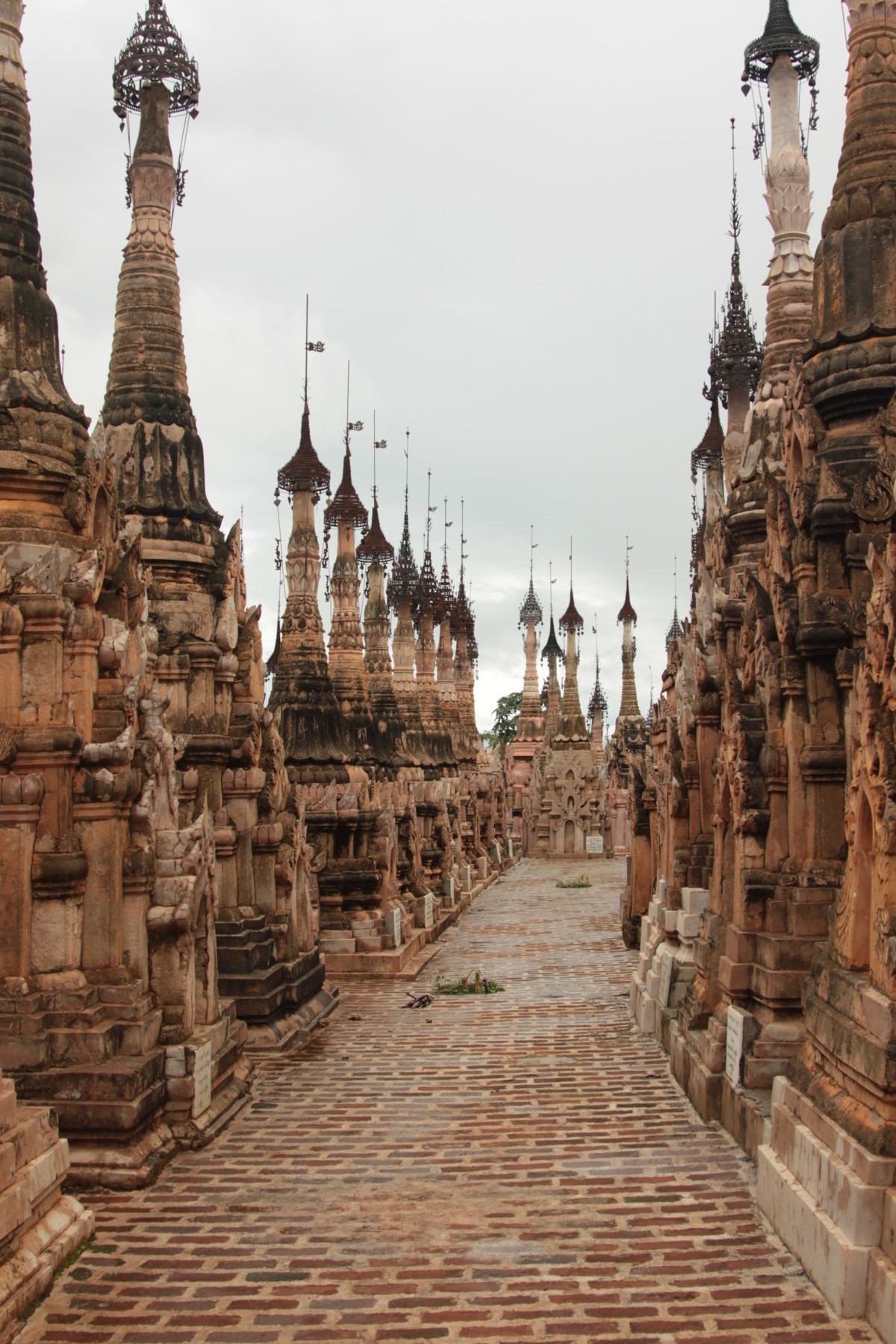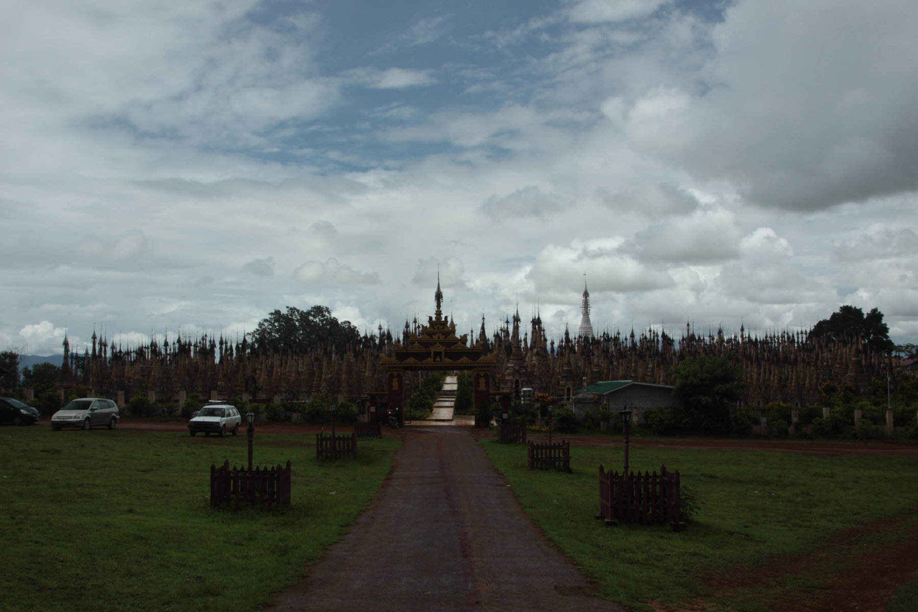 No último dia em Inle a principal atividade, foi ir até Kakku na companhia de Melissa e de Fabianne, um reino de pagodas concentradas numa área com um quilómetro quadrado! Uma autêntica floresta de densidade impressionante! 🙂 Para fazer o tour, necessitámos de um condutor e de uma guia oficial, pois infelizmente viajantes independentes não podem visitar o local. O caminho entre o lago e Kakku foi longo, sensivelmente duas e meia em cada direção, mas agradável, fruto das florestas e dos campos muito verdes que se avistavam. Durante a visita, também tivemos muita sorte, pois foi essa foi a única altura do dia em que não choveu. Um timing perfeito e muita sorte à mistura! 😉