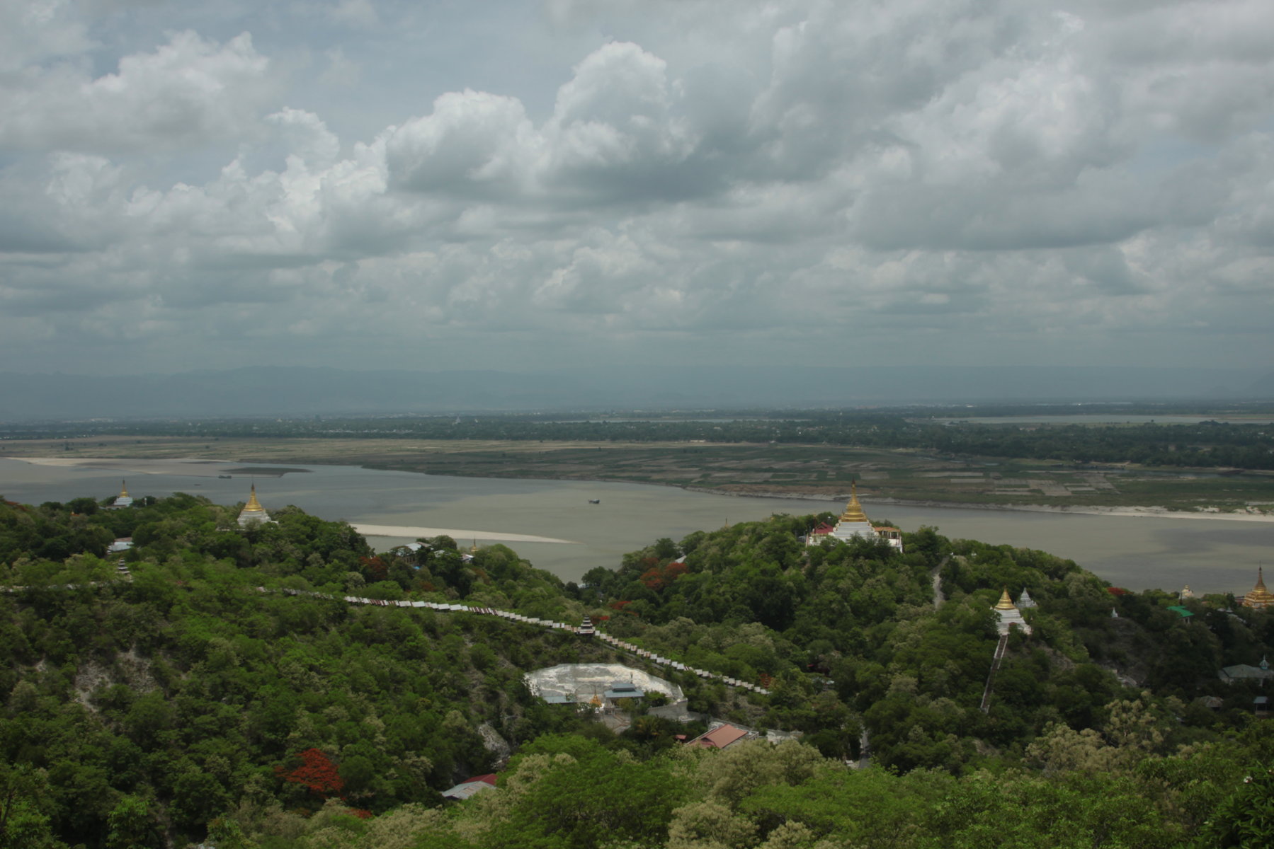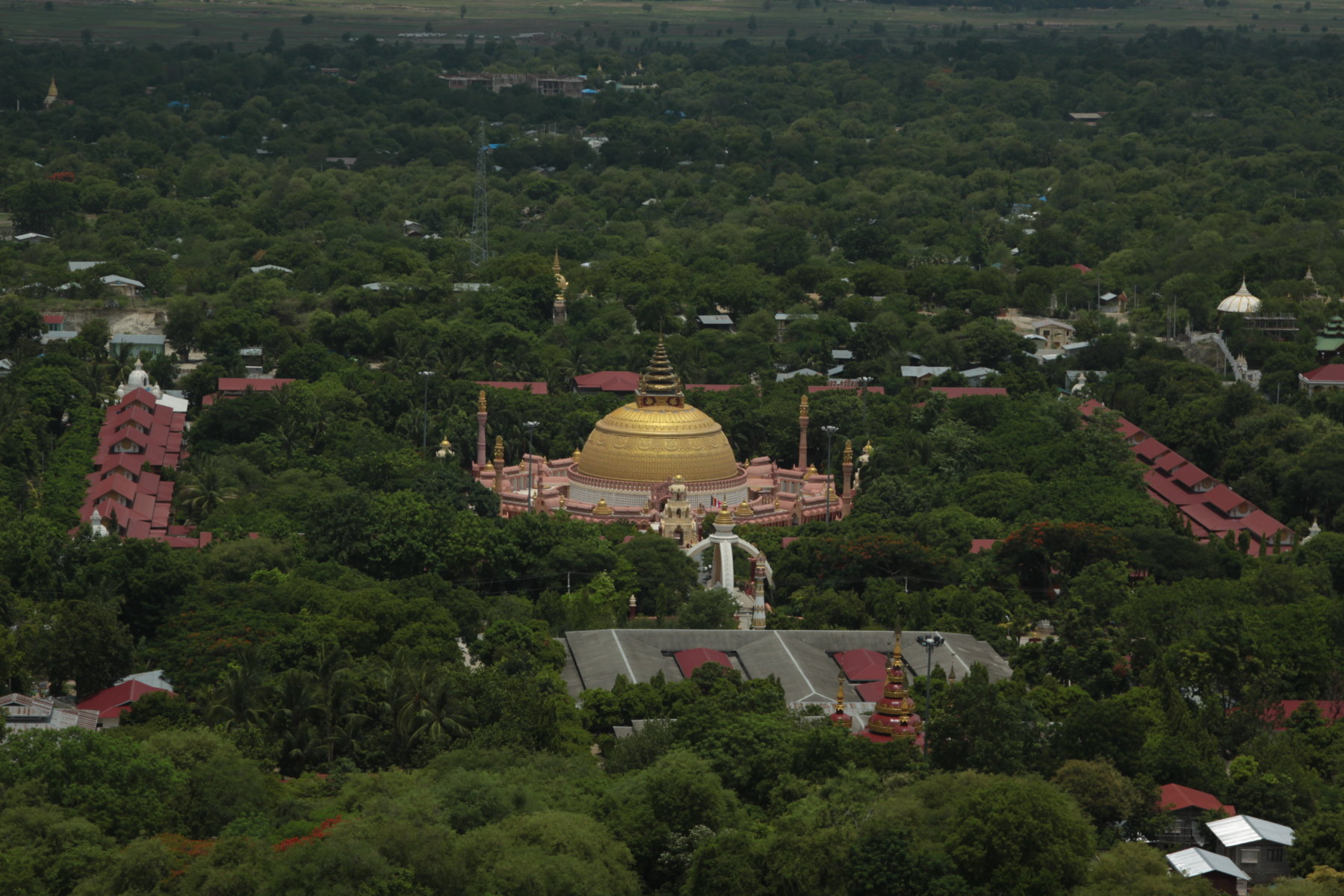 Daí, seguimos para a colina de Sagaing, donde observámos uma paisagem coberta de pagodas, florestas, campos de cultivo, rios, pontes e para além da bonita panorâmica, o templo e a pagoda no topo, revelaram-se bastante fotogénicos e cheios de detalhes. Depois da simpática visita, o nosso motorista levou-nos até às imediações de Inwa e antes de atravessarmos o rio num pequeno barco, aproveitámos para almoçar.
