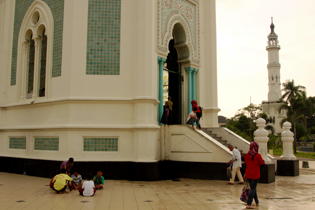 Medan – pode encontrar mais aqui – no norte da ilha de Sumatra, foi o meu primeiro destino na Indonésia. Na cidade o grande destaque vai para a imaculada mesquita branca – Masjid Raya – que visitei de sarong posto e a zona do palácio onde fui pela primeira vez entrevistado por simpáticas estudantes. Medan revelou-se uma cidade, suja e cinzenta, cheia de tráfego e fumo – motas, motorizadas, autocarros/carrinhas, carros – barulhenta, frenética, caótica, vibrante e repleta de… comida deliciosa.