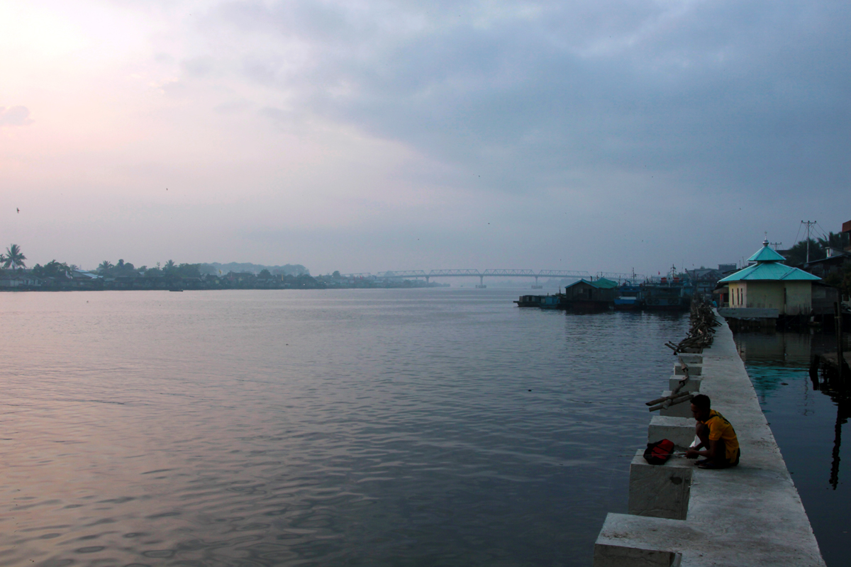 Na chegada ao aeroporto de Pontianak, para evitar os taxistas locais e os seus preços inflacionadíssimos, comecei a caminhar em direção à cidade, acabando por ser bafejado pela sorte, uma vez que apanhei boleia com Surat – um senhor que trabalhava como engenheiro, na manutenção de aviões – para o centro. Para além da boleia, Surat ajudou-me a encontrar um hotel barato e levou-me a tomar o pequeno-almoço no Hajis – um afamado local da cidade, principalmente pelo seu Rujak Juhi. Junto ao rio, a minha boa sorte continuou, uma vez que no cais conheci Theresia e umas amigas, com quem fui até ao Tugu Khatulistiwa – monumento do local, onde fica a linha do equador, tendo nesse momento tido a oportunidade de ter um pé em cada hemisfério do nosso planeta. No regresso ao centro, encontrei-me com Awi, com que visitei uma casa tradicional da tribo Dayak e ao falar sobre Kalimantan comecei a perceber, que o meu plano de cruzar a ilha de costa a costa – Oeste a Este – era demasiado ambicioso. Naquela tarde tranquila, enquanto procurava um local com internet, a sorte e as boas estrelas mantiveram o seu rumo, pois ao conhecer MS. – um simpático rapaz que me deixou usar a sede do seu partido político – ele prontificou-se a ajudar-me a apanhar o autocarro para Singkwang durante a madrugada. Entretanto, como combinado fui jantar com o Awi e fiquei com a certeza que a cidade de Pontianak, pode não ser um destino turístico por excelência, mas que comida deliciosa essa, existe em abundância! Sentindo que para além da sua gastronomia vibrante, a cidade pulsa de vida e movimento…