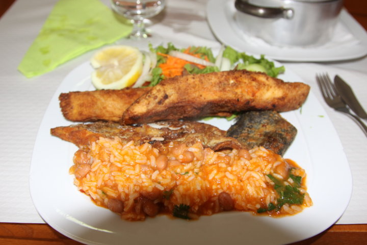 Na chegada a Porto Covo não pude deixar de reparar que a maioria dos passageiros que “desembarcaram” na povoação eram estrangeiros. Portugal está definitivamente na moda! 🙂 Antes de iniciar o meu périplo andante, resolvi ter uma refeição mais consistente e na rua principal da cuidada vila, encontrei o que procurava: uma bela e generosa dose de peixe frito acompanhado de arroz de feijão e umas farófias divinais. A “caminhada” iniciava-se em beleza. 😀