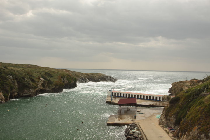 Terminado o delicioso repasto, eram 15.10 quando pus realmente os pés ao caminho e depois de confirmar a direção com um grupo de anciões locais, segui até ao pequeno porto da povoação. Nesta altura, o céu estava bastante prateado e fotogénico e na passagem de uma pequena enseada, fruto da maré e do eclipse lunar… pufff… fez-se o chocapic! No preciso momento que atravessava, veio uma onda que ultrapassou o cano das botas e que me deixou os pés a boiar, tal como se estes estivessem dentro de um aquário! Perfeito! 😛 Aparvalhado de todo… a minha mente foi lesta a processar a informação: “Então e agora? Regressar? Fora de questão! Tirando umas havainas, não tenho mais calçado. Nem pensar! Resta-me andar com as botas… mas o meu futuro, vai ser definido numa palavra: BOLHAS!”