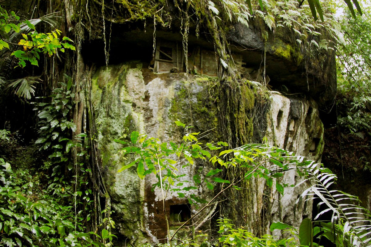 Após tantas emoções vividas nos dias anteriores, ao quarto dia de estadia, tive momentos um pouco mais tranquilos, rumando a Norte de Rantepao. Depois de alguns pequenos contratempos, consegui finalmente seguir aos zigue-zagues, montanha acima até Batu Tumanga. No caminho, apesar do espesso nevoeiro existente, foi-me possível observar a bonita paisagem de verdes arrozais em socalcos. Ao chegar ao meu destino, estava um nevoeiro de tal forma intenso que decidi seguir diretamente para Lokkomata, onde pude encontrar múltiplos túmulos dentro da rocha. Aí, fruto da bruma, fiz uma curta visita ao local e na pequena aldeia de Pana deparei-me com mais umas dezenas de túmulos – desta feita para bebés – cravados numa enorme parede de rocha. Neste local, fruto da mescla perfeita de rocha e vegetação pareceu-me que tinha chegado ao “Mundo Perdido” ou a um cenário digno de uma película de Indiana Jones. Espetacular! Para além desta visita “selvagem”, foi nessa aldeia que conheci o simpático e afável Mr. Papakiki com tive a oportunidade de beber um café e de estar uns momentos em amena cavaqueira.