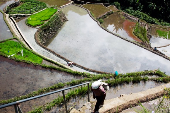 Depois da visita à aldeia de Batad e aos seus terraços perfeitos, e do trekking do dia anterior, a visita aos terraços de Banaue afigurava-se como uma mera “formalidade” para concluir esses dias felizes na Região Administrativa da Cordilheira (RAC). Porém, mesmo estes revelaram bastante beleza e na travessia pelo seu interior, tive de contratar os serviços de dois miúdos de palmo e meio, Dave e Nick muito engraçados! Com eles percorri aquela verde paisagem, em passo relativamente rápido – os miúdos tinham asas nos pés -, fui fazendo alguns equilibrismos e tirando algumas fotografias em redor.