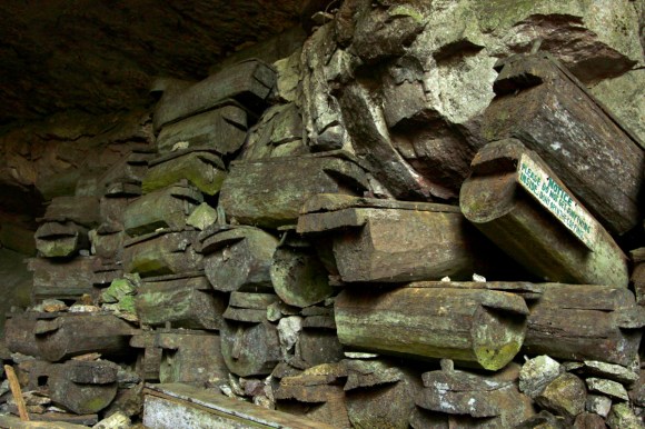 Cheguei a Sagada, quando a noite já cobria a terra. Nessa altura, fiquei no primeiro quarto que encontrei, uma vez que estava sem muita paciência para procurar mais. Afinal tudo o que queria, era tomar banho e repousar do cansaço acumulado das viagens dos dias anteriores, Donsol – Sagada, a travessia de aproximadamente mil quilómetros. De sul para norte. Na ilha de Luzon. Na vila, fiz um trekking interessante na companhia de Mr. Ingo, um guia local com quem fui até ao vale do Eco. Durante o percurso passámos por algumas paisagens bonitas e agradáveis: pinheiros, plantações de café, um rio subterrâneo, uma caverna, uma mini-cascata, arrozais, sobe e desce em colinas, zonas escorregadias de rocha e lama, formações calcárias, cursos de água e à semelhança do que encontrei em Tana Toraja, caixões suspensos em grandes paredes de rocha. Depois de regressar ao centro da vila, enveredei sozinho estrada fora até encontrar a fantástica entrada da Semeangui Cave – caverna grande – e daí parti em busca da Lemagui Cave – caverna dos enterros, onde encontrei múltiplos caixões antigos de madeira a apodrecer e onde já começavam ossos a despontar. Ao despedir-me de Sagada, pensei: “adeus, vila tranquila e serena. Adeus, inesquecíveis cavernas. Adeus, antigo culto dos mortos.”