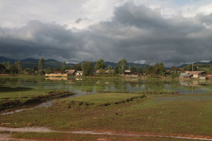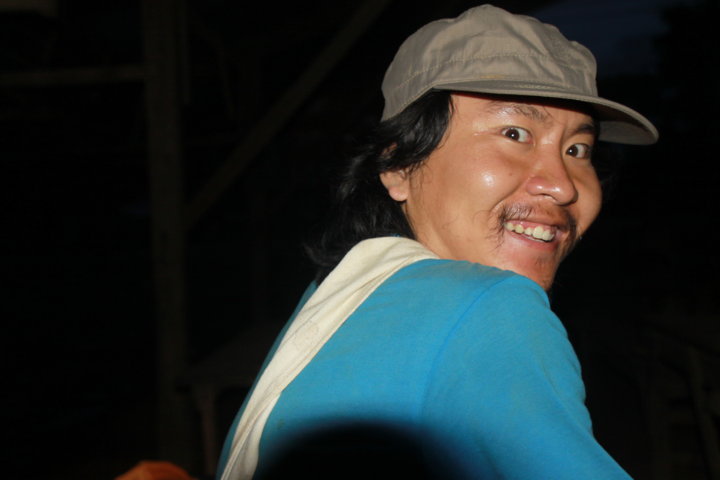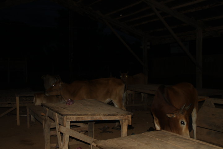 Assim que chegou recomeçou: “Phonsavanh, Phonsavanh, Phonsavanh…” e eu com a mão a acenar para ele ter calma e em inglês: “Yes, Yes… We go.. After. Now we need to rest”. Uns minutos depois ele voltou a montar na lambreta e desapareceu, mas foi sol de pouca dura, porque quase imediatamente voltou com o seu amigo tradutor. Este tentou dissuadir-nos de dormirmos ali: “Cuidado com a vossa segurança. Ai os assaltos. Ai os mosquitos. Vocês têm de ter cuidado, convosco” e eu a responder-lhe: “O Laos é um país muito seguro e com pessoas muito afáveis. Muito obrigado pela vossa preocupação. Não se preocupem que nós temos repelente. E nós vamos voltar a Phonsavanh, claro! Mas agora estamos a repousar e para além disso o Zhou, o meu amigo, tem medo de trovoadas”. 😛 Tudo isto com um sorriso irónico estampado. Entretanto apareceu um nativo mais velho a falar francês e embriagado, ao qual eu cravei um cigarro e ouvi durante cinco minutos, até ele desaparecer do mercado e da equação. 😛