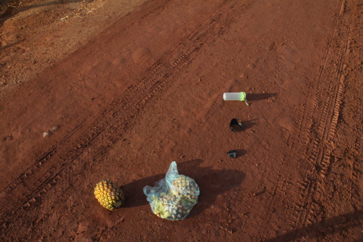 Percebemos que ele queria que voltássemos para trás e fruto da sua agressividade, apesar de contrariados, começámos a pedalar em direção da aldeia. Ele montou a lambreta, seguiu-nos durante um bocado a poucos metros de distância e assim que reentrámos na aldeia ele virou para uma casa e nós seguimos devagar a “discutir” as nossas opções, comigo a praguejar: “Filho da P&%@! Já viste aquele c”$#%zinho de &$#£@?” e nisto demos de caras com o que parecia ser a nossa solução, a área de um mercado, com um telheiro gigante e com mesas de madeira a servir de bancadas de venda. Perfeito! 🙂 Estacionámos as bicicletas e prendemo-las com um cadeado. Nos entretantos fomos aliviar o peso das bexigas e sentámo-nos nas mesas prontos a descansar, quando…