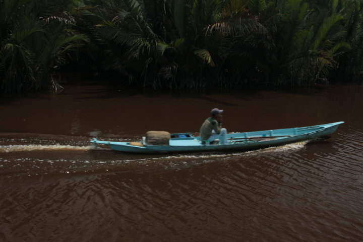 Durante a viagem, vimos palmeira e outros tipos de vegetação semi submersa, pequenos barcos de transporte de mercadorias, de pescadores, barcos turísticos de médio porte (como o nosso), muitas espécies de pássaros, alguns macacos probuscius e dois orangotangos muito disfarçados no meio da folhagem 🙂 ; recebemos um briefing do nosso guia (Mr. Supian Hadi, ou simplificando Mr. Uzo) e ficámos a perceber o plano de “festas” para os próximos dias; deliciámo-nos ao almoço (arroz + tempe + vegetais + peixe); e comecei a perceber que o dinheiro investido iria trazer bastantes regalias! 😀 (tripulação: mecânico, capitão, cozinheira e guia).