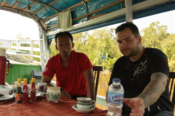 Voltámos a embarcar e partimos de regresso a Kumai, mas antes arrumei a mala, fiz um backup de todas as fotografias, falei mais um bocado com o Mr. Uzo e com Andreas (que estava de partida para Banjarmasin), almoçámos e antes de nos despedirmos daquela super tripulação, retribuímos o excelente serviço prestado com uma gorjeta geral. 🙂