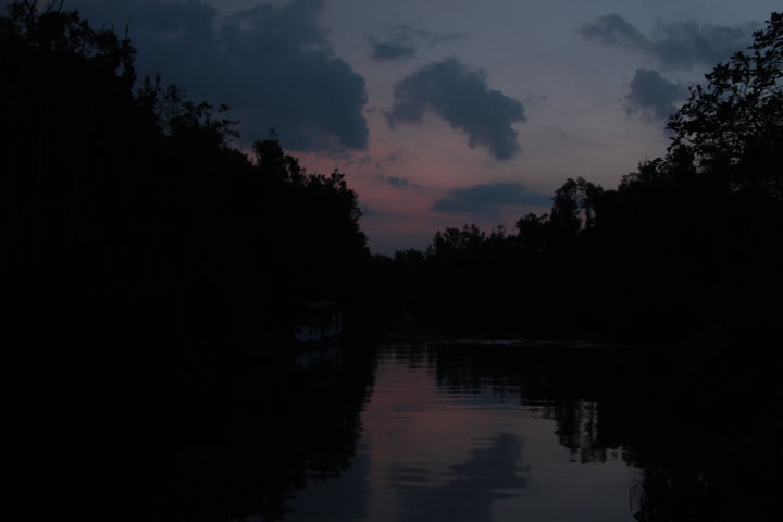 No nosso último dia, no interior do parque natural de Tanjung Puting, voltei a acordar cedíssimo e a ver o nascer do dia. Depois do pequeno almoço fui até à proa tirar fotografias: as margens, a vegetação, os barcos, a água, os reflexos, os macacos, os tucanos, os kingfish e outras espécies de pássaros e um crocodilo bebé! 🙂