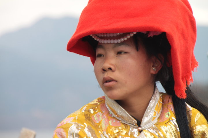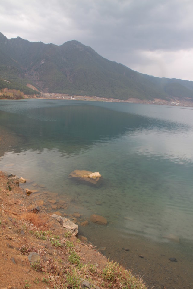 Em Luòshui, a refeição degustada em rebanho e graças às nossas companheiras de viagem que comiam como piscos, eu e o Xiaoling pudemos comer mais à vontade. 🙂 Esta aldeia revelou ser maior que as anteriores e aqui verificámos que o autocarro para Lijiang – nosso próximo destino – partia a múltiplas horas com particular incidência na manhã. Até Lǐgé, foi um pulinho e nesse trajeto em que fizemos três paragens bastante rápidas, fruto dos aguaceiros intensos, pude observar as profundas mudanças no lago. A topografia do terreno alterou-se radicalmente e passámos de planícies para montes e vales, a cor do água também mudou e os azuis e verdes ficaram ora mais esbatidos ora mais profundos. Na chegada a Lǐgé pagámos ao nosso “jarbas” e balímos a despedida. 😀