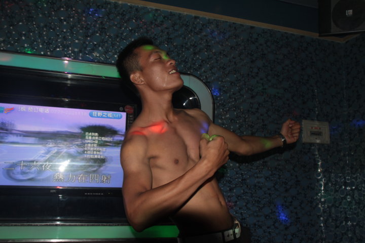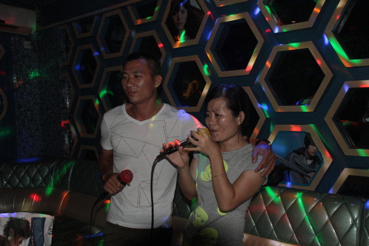 Fomos andando ao longo do corredor e quando chegámos ao número 12, rodámos a maçaneta, abrimos a porta e entrámos na sala. No início só lá estava eu, o meu “casal de salvadores” e um amigo deles e que me deu boleia, Li Yang Zang e com os três, aprendi a dizer amigo em chinês, PonYu. 🙂 Entretanto começámos a escolher músicas e começaram a aparecer amigos deles… e mais… e mais! 😛 Quando me decidi a contá-los, já éramos dez pessoas. O tempo foi passando, começaram a cantar, a fumar, a beber, a jogar para beber e o ambiente foi aquecendo. A cerveja inicial esgotou-se, vieram mais dois cestos de cerveja que também se esgotaram, veio comida e mais bebida e a sala 12 passou literalmente para a fase da “loucura”: T-shirts abertas e peitos de galo à mostra, posições de sumo e de kung-fu, ruído a galopar, pessoas em cima de bancos corridos… enfim um clima de festa brava! 😉