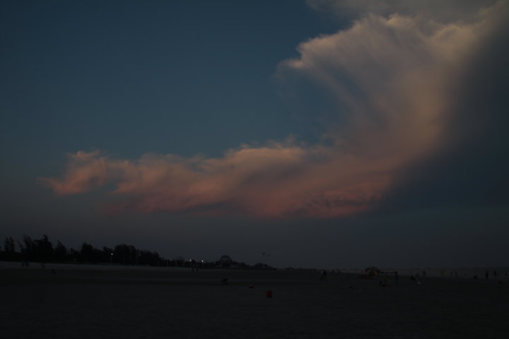Depois do passeio matinal, voltei ao centro da cidade (hostel) para trocar de indumentária e parti para Silver beach. E o que se pode dizer, acerca da mesma? Que não desiludiu, bem pelo contrário! 🙂 O seu areal era vastíssimo e de cor acinzentada (silver), a água estava de tal modo quente, que mais parecia uma sopa e fruto dum calor dos diabos fui cozendo ao longo da tarde. Para além disso, ainda deu para conhecer uns pescadores com os quais petisquei, bebi uma “zurrapinha” e para terminar em beleza, vi um final de tarde mágico proporcionado pelo pôr do sol, cor de sangue e por umas nuvens fabulosas que corriam no céu. Foi um dia muito agradável e o complemento ideal do dia anterior e só posso dizer: ”Saio de Behai de papo e alma, cheios!”. 😀