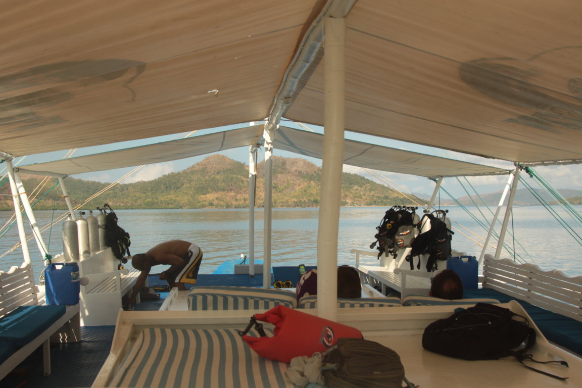 Nos arredores da ilha, tive dois dias de mergulho intenso num ambiente pesado e sombrio de navios japoneses afundados durante a Segunda Guerra Mundial e aí senti um nervoso acrescido por ter entrado pela primeira vez debaixo de água, em espaços realmente confinados. Neste mundo submerso, senti o lado “negro” do mergulho, principalmente no navio Irako onde atingi a minha profundidade máxima (trinta e oito metros e meio). Porém, mesmo naquele mundo de trevas, existia luz e sempre que esta penetrava pelas frinchas e buracos existentes naquelas estruturas de aço gigantes, parecia que estava numa catedral sub-aquática! Fenomenal! Inesquecível! 😀 Para além disso, observar “algo” feito pelo homem, onde se pode ver vestígios da sua presença (as cargas inalteradas dos navios afundados) e onde ainda existem componentes que funcionam (tais como válvulas e torneiras…) é algo de inolvidável. Ao largo de Coron, foi ainda possível mergulhar nas águas escaldantes (38 ºC) de um lago de água doce. Aí, vi de forma perfeita as linhas térmicas onde a água mudava drasticamente de temperatura, sentindo em simultâneo metade do corpo quente e metade fria! Tirei as barbatanas e fiz “escalada” sub-aquática, atravessei troncos de árvore qual equilibrista e em slide, e senti possivelmente o que sente um astronauta ao pisar solo lunar.