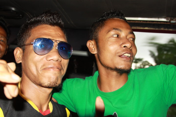 Já depois do espetáculo, regressei ao hostel onde na zona do átrio, encontrei um grupo de australianos que iam tentar subir o vulcão Merapi nessa noite e ao falar com eles, decidi acompanhá-los. Assim, preparei uma pequena mochila para levar e sem dormir, aguardei pela hora da partida. Por volta da 1.00, tentámos arranjar um meio de transporte para a base do vulcão, mas não encontrámos nenhum táxi, carrinha ou carro, até que passados vinte-trinta minutos, apanhámos uma boleia negociada com dois miúdos, que não falavam inglês e que pareciam um “pouco alterados” (pelo menos uma garrafa de vodka estava no carro). 😛