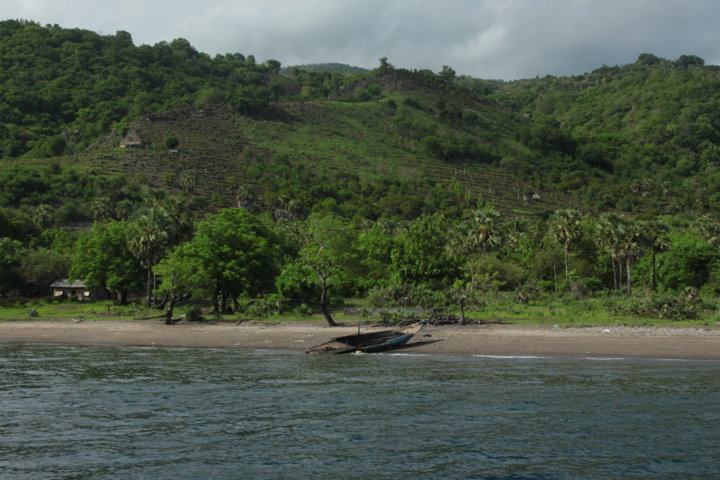 Como as botas não ajudavam nada (a rigidez da sola era demasiado elevada), descalcei-me e aos poucos e poucos fomos descendo aquela parede de rocha e areia. Tudo correu muito bem, exceto um corte que fiz num dedo quando bati numa rocha mais afiada. Da base da parede, continuámos a descida e só quando olhei para trás, tive uma pequena noção onde tinha estado! Uma semi-loucura, que correu bem! E por isso entrou para o capítulo das aventuras, sem mazelas de maior (pequenas escoriações, esfoladelas e arranhadelas). Quando voltámos à zona da vegetação densa, tive a certeza que a parte mais difícil estava feita e que a partir daí apenas tinha de andar com alguma atenção, até chegar à base do vulcão. Da noite, passámos para um amanhecer suave, posteriormente para sol e céu azul e foi com um tempo radioso, que atingimos a base do todo poderoso Merapi, cansados mas felizes. Apesar de não termos atingido o topo, não havia ninguém desiludido com a experiência “maluca” que acabáramos de ter. 🙂