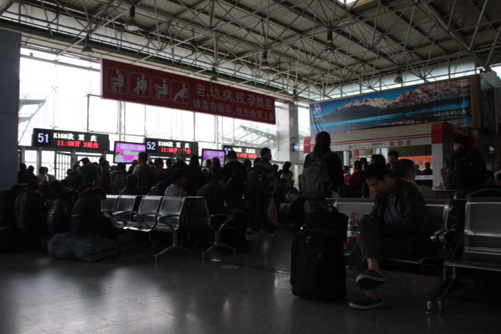 Parti de Kunming ao meio dia e durante a longa viagem que durou quase vinte horas aproveitei para escrever – numa posição de lorde – sobre os meus dias na cidade e escrevi notas soltas em tempo real: tempo cinzento e pardacento; terras castanhas e secas; paisagem entre cortinas translúcidas; velho metediço, a quem tive vontade de dar um chega para lá; túneis; vilas e cidades como tantas outras; vendedores de comida e de “tretas”; alguns vales profundos; ler; paisagem mais verde (16.30); ver a frente do comboio devido a uma longa curva; montanhas e verdes (18.15); pôr a bateria da máquina fotográfica a carregar; agora que já tenho novamente computador, organizar um ficheiro de excel com todos os gastos desde o início (exercício de memória); tentar escrever algo para postar no blog – mas estar cheio de sono. Noite interminável (longa… loooooonga… looooooooooooooooonga).