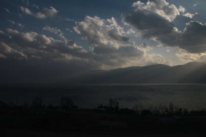 A viagem de comboio decorreu com normalidade, porém os lugares disponíveis não eram cadeiras mas sim camas. Porém, como esta viagem não era noturna, as mesmas tinham de ser partilhadas – não, não é no sentido literal! 😉 – e as pessoas sentavam-se lado a lado. Durante o percurso acabei de pôr o diário em dia, observei a verde paisagem, as montanhas, os inúmeros túneis, o grande e azulão lago Erhai no qual Dali se localiza, o sol a doirar e as nuvens a ganharem cor.