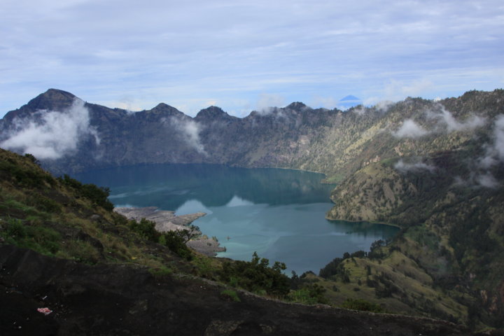O Gunung Rinjani – pode encontrar mais aqui -, segundo vulcão mais alto da Indonésia – 3726 metros -, foi a minha ascensão mais elevada no país e uma das mais maravilhosas! À medida que a noite perdeu fulgor e intensidade, o Rinjani começou a revelar toda a sua beleza… o sol surgiu aos poucos e iluminou progressivamente, vales, montanhas, a cratera, o lago e o oceano; as nuvens que corriam no céu, formavam-se e dissipavam-se, e eram ora fiapos, ora camadas densas de “algodão doce; as cores mudavam de intensidade a cada instante fruto da luz que se intensificava e a paisagem era uma paleta rica: os negros e ocres na cratera do vulcão; múltiplos azuis no lago, no oceano e no céu; brancos e cinzas nas nuvens; verdes e castanhos nas florestas, vales, árvores, vegetação e montanhas; e toda a panorâmica envolvente que era absolutamente inesquecível – vales e montanhas, coroadas pela visão do poderoso vulcão de Bali – o Gunung Agung – e de três “pontos” no oceano, as Gili. Um festim para os olhos, um estrondo monumental para os corações, na despedida da ascensão até ao cume, de um dos vulcões mais belos da Indonésia! E uma das paisagens mais fascinantes e encantadoras de toda a minha vida!