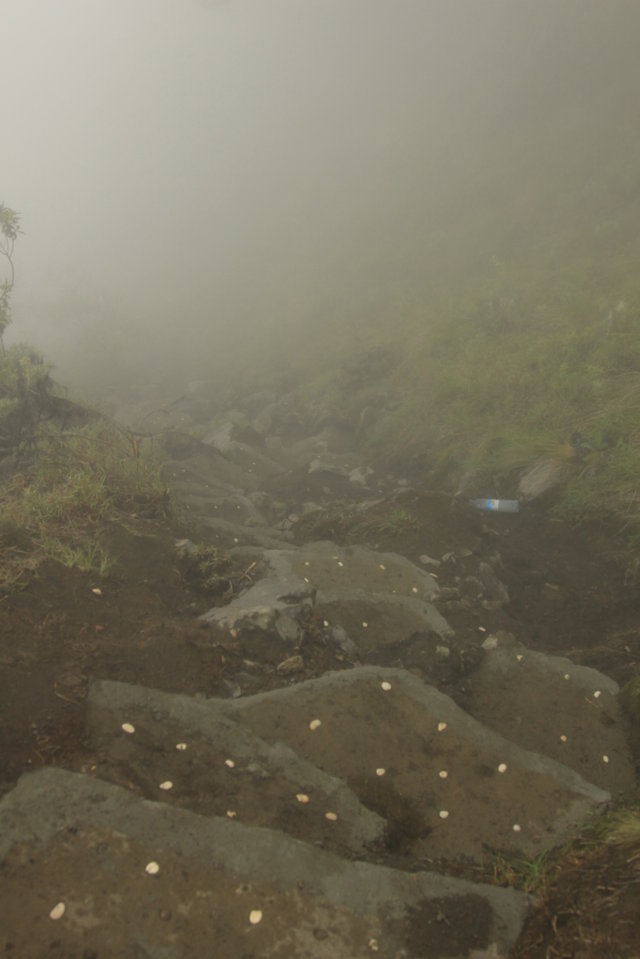 Durante o dia encontrámos Mark 🙂 que vinha em rota descendente, conversámos e rimos uns com os outros e na paragem para almoço, vimos alguns macacos. A partir desse momento, o caminho endureceu progressivamente, o nevoeiro aumentou consideravelmente e entrámos num mundo encantando de nevoeiro, sombras e vultos de árvores.