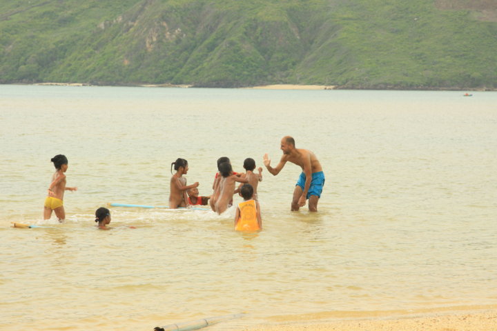 A praia de Kuta – pode encontrar mais aqui – foi uma enorme miscelânea. A água não era tão límpida e cristalina como nas Gili, mas a areia era confortável e parecia grãos de pimenta, existiam rochas vulcânicas, cheias de óxidos e sulfatos e uma zona de manguezais, para além de macacos e cabras, muitos adolescentes a fazer as “célebres” entrevistas – tal como em Sumatra -, vendedoras muito insistentes – à semelhança de Koh Samui – e principalmente, muitas crianças alegres e sorridentes.