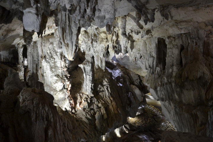 A primeira caverna que visitámos foi a Lang e aqui estivemos cerca de meia hora. Apesar de na mesma existirem formações geológicas magníficas, não senti que estava num local verdadeiramente especial, uma vez que no Laos em redor de Vang Vieng já tinha visto muitas formações deste género. Quando saímos desta gruta, dirigimos os nossos passos para a caverna do Veado (que tem a maior passagem do mundo) e à medida que íamos penetrando, fui ficando siderado com a sua monumentalidade. A paisagem era esmagadora e eu senti-me uma pequena partícula no meio da mesma. Ao continuar a andar fui sentindo que estava a entrar num mundo perdido e completamente primitivo e se por acaso nesse momento visse um dinossauro a passar-me à frente do nariz, podia acreditar que o mesmo era real e que não era fruto da minha imaginação ou uma alucinação! 😀