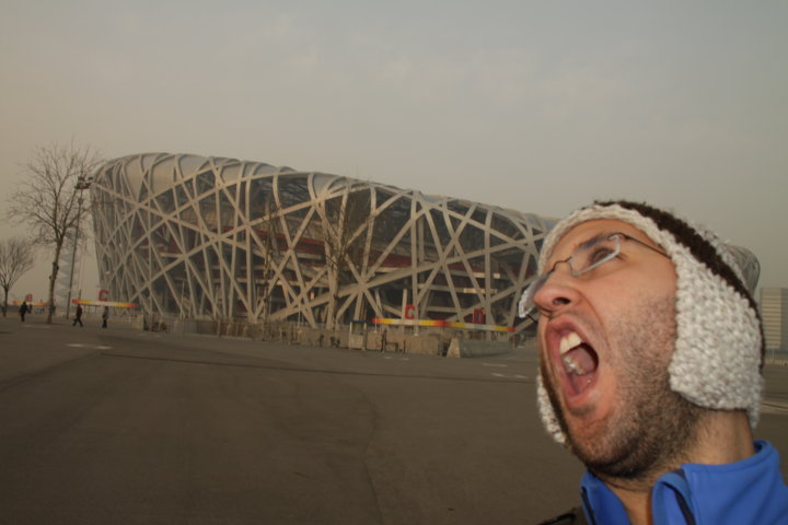 Depois da longa visita ao Palácio de Verão, resolvi passar pela Zona Olímpica de Pequim e percorrer as imediações do Estádio e do “Cubo”. Porém e enquanto o fazia, o meu animal adormecido começou a despertar e quando dei por mim já rugia em frente ao estádio com a boca e com as narinas bem abertas. Enfim como diria o adorado boneco da TMN: “Deita cá para fora”, afinal de contas o que será o dia sem uma pitada de loucura e divertimento? 😉