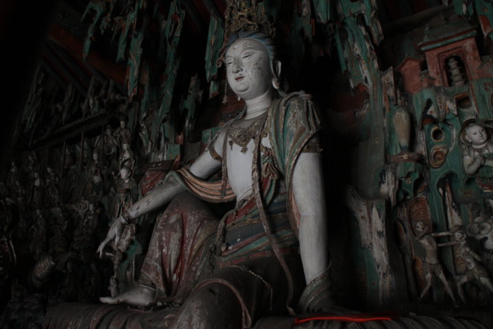 Em oposição aos exteriores desmaiados do templo, neste caso, seria no interior que residia o seu valor maior. O bilhete não foi propriamente barato (40Y), mas eu queria realmente entrar. Tendo em conta que este espaço (Shuanglin) foi construído há 1500 anos, e que no seu interior estão albergadas mais de 2000 estátuas Budistas em terracota e madeira (dinastias Song, Yuan, Ming e Qing), grande parte delas pintadas, com as cores delicadas originais preservadas e ainda vivas, até um leigo como eu em cultura chinesa percebe que está na presença de algo muito raro. 😀