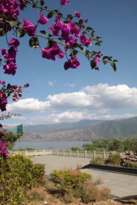 O dia amanheceu já sem chuva e cor de prata, e o nosso primeiro passo foi alugar duas bicicletas para dar a volta ao lago. Qiong Hai, tem quarenta e dois quilómetros de perímetro, mas no final do percurso enganámo-nos numa cortada e esse valor passou para aproximadamente quarenta e oito quilómetros. 😛 O lago pode ser dividido em duas partes distintas, a turística e a real.