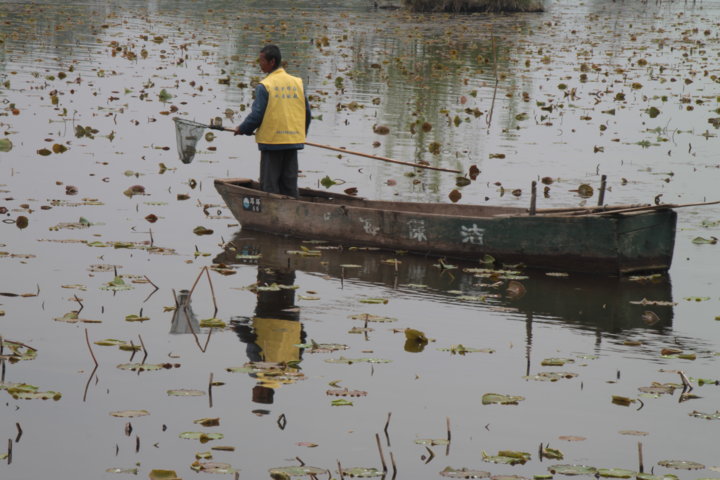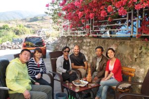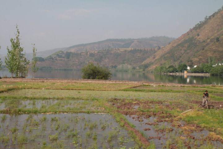 No decorrer da manhã, pedalámos pela zona turística. Aqui, as margens estavam bastante arranjadas com jardins, zonas para bicicletas, árvores, estátuas, zonas pedonais, embarcadouros e barcos a remos. A partir do meio-dia chegou o sol, e, à medida que fomos avançando começámos a ver o Qiong Hai real. O das aldeias, o dos velhotes e das crianças, o das pessoas sentadas na rua a jogar às cartas ou majhong, a conversar ou pura e simplesmente a ver o tempo passar. O Qiong Hai dos camponeses, dos carros e das motas a buzinar, dos verdes campos cheios de água e vida, o do suor e esforço humano e animal, o dos bois, das vacas e dos incontáveis pássaros, o dos montes à volta do lago e das flores… rosas, roxas, amarelas e brancas. 🙂