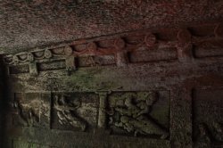 Durante o dia e passo a passo, visitámos o Buda de Leshan e a área envolvente. E mesmo com o “monstrinho” às costas afirmo que adorei visitar este local. 🙂 Primeiro, recebi o impacto “clorofilino”, fruto da vegetação luxuriante que nos rodeava. Depois, a extraordinária cor dos templos, pavilhões e muros circundantes de um ocre antigo cheio de profundidade e de textura, a tranquilidade da maioria dos locais, apesar do espaço ser super turístico, as pequenas cavernas, fruto do labor humano e onde me deparei com a frase: “It is easy to draw ghosts, but difficult to draw dogs and horses” (É fácil desenhar fantasmas, mas difícil desenhar cães e cavalos) e que estava relacionada com o facto dos cães e dos cavalos serem os guardiões das almas. Por último e claro, o impacto da presença massiva do Buda.
